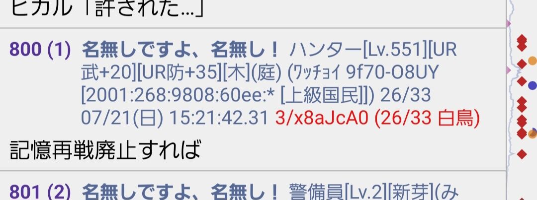 77 名無しですよ、名無し! 警備員[Lv.6][新芽](ジパング) (ワッチョイW d316-pnnd [240b:c010:452:5b24:*]) :2024/07/22(月) 00:13:53.02 ID:JuPaGl720